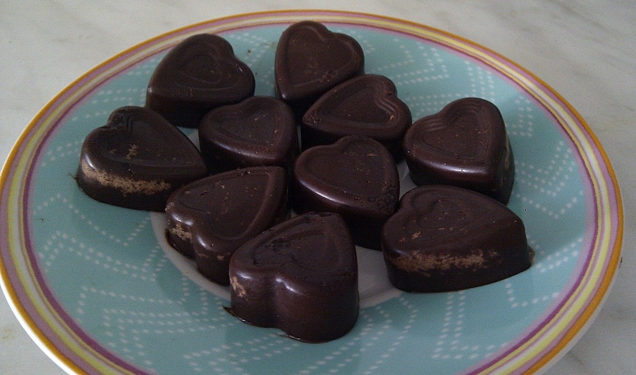 sabo, z maso napolniš modelčke za pralineje in jih postaviš v hladilnik. Masa
