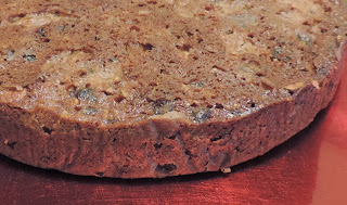 odstraniš tisti trdi ostanek peclja). Dodaš brusnice, rozine in kandirano