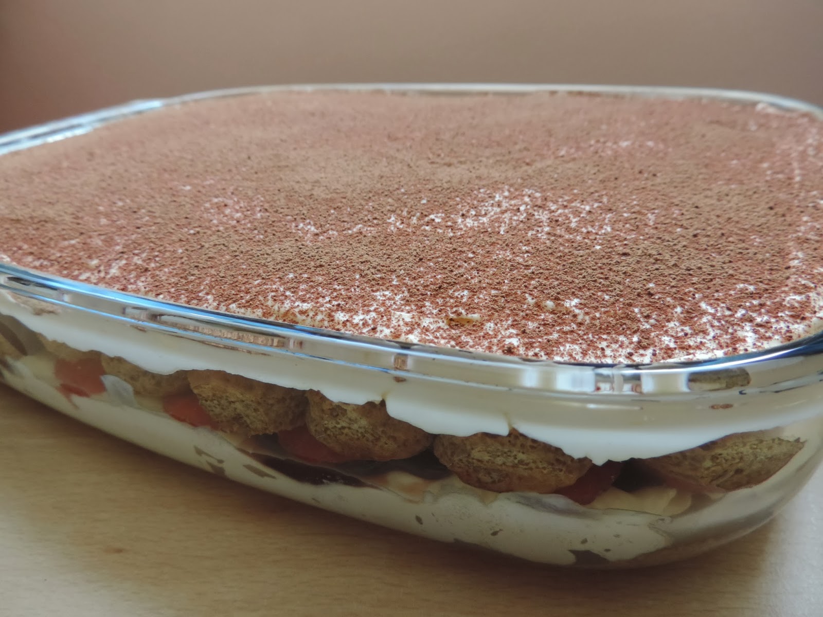 Najprej sem hotela narediti navaden tiramisu... pa se mi je zdelo vse skupaj nekam dolgočasno... Z nekaj čokolade in jagod pa itak ne moreš nikoli zgrešiti J