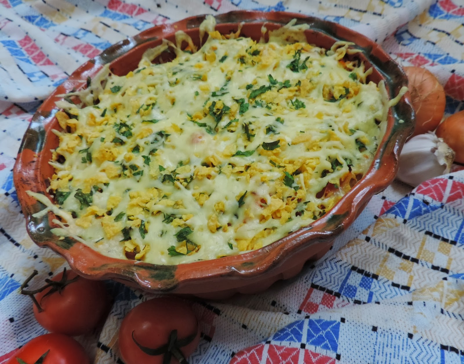 in pečeš približno 30 minut. Med tem časom zmešaš sir, zdrobljene cornflakse in
