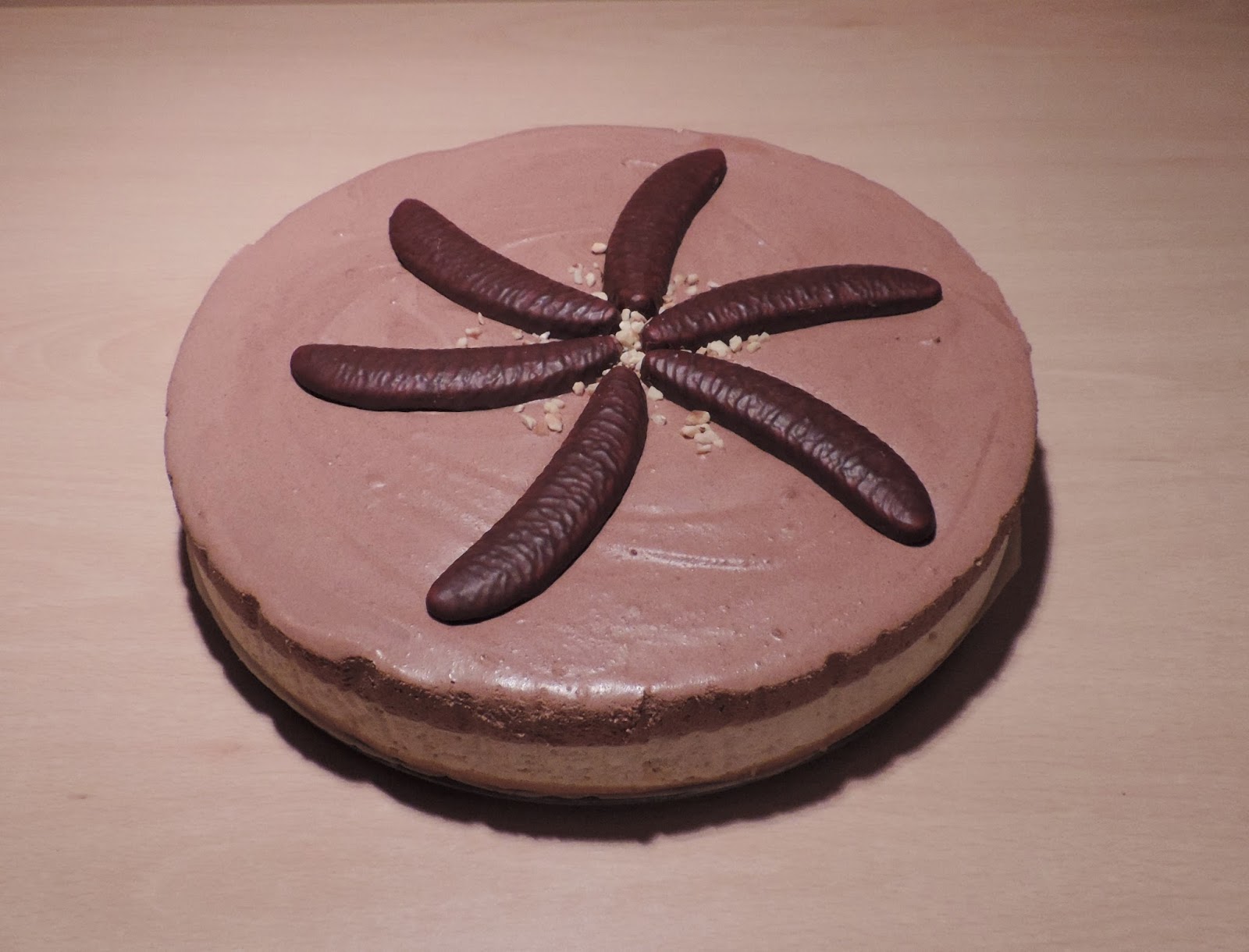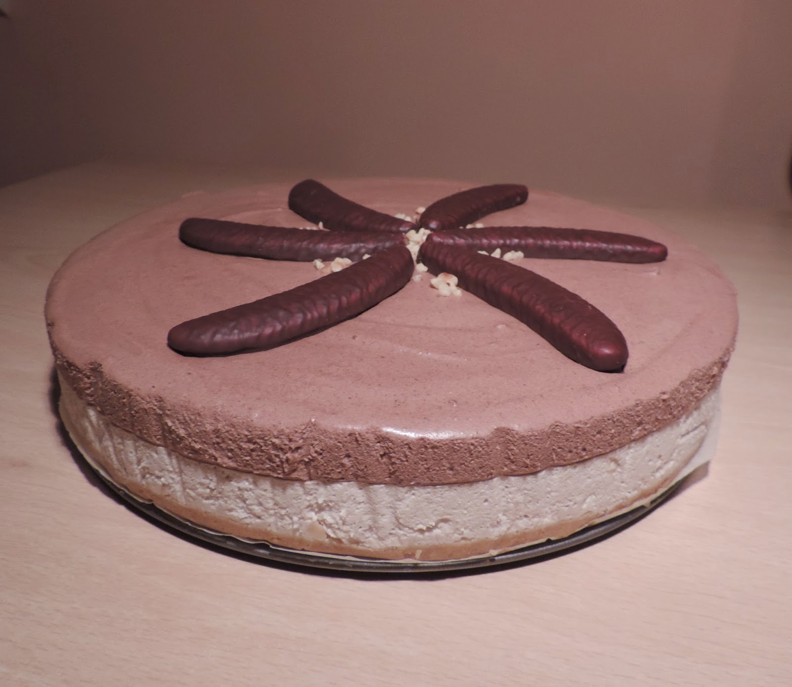 čez ohlajeno piškotno podlago. Daš nazaj v hladilnik, da se popolnoma strdi.